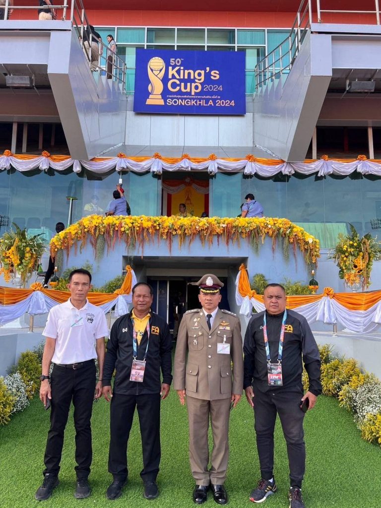 พร้อมด้วย ข้าราชการตำรวจ สภ.เมืองสงขลา ปฏิบัติหน้าที่รักษาความปลอดภัยการแข่งขัน ฟุตบอล King’s CUP นัดชิงชนะเลิศ ระหว่าง ทีมชาติไทย และทีมชาติซีเรีย โดยมี พล.อ.เฉลิมชัย สิทธิสาท องคมนตรี เป็นประธานมอบถ้วยรางวัล