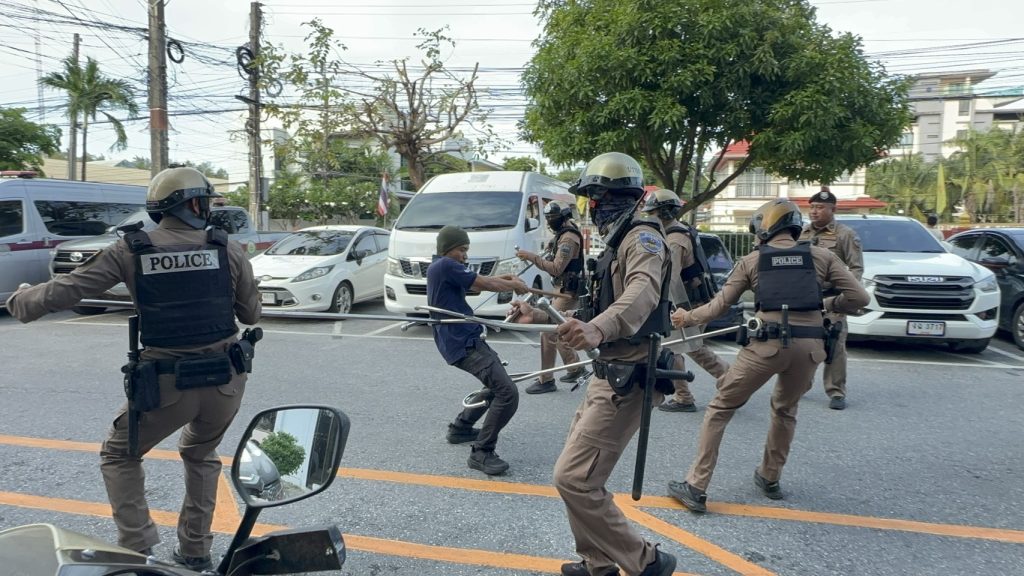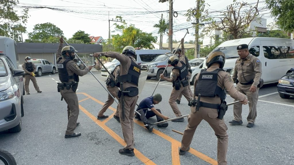 ซักซ้อมแผนยุทธวิธีการเข้าระงับเหตุ ฯคนร้ายติดสารเสพติดอาละวาด ดังนี้
