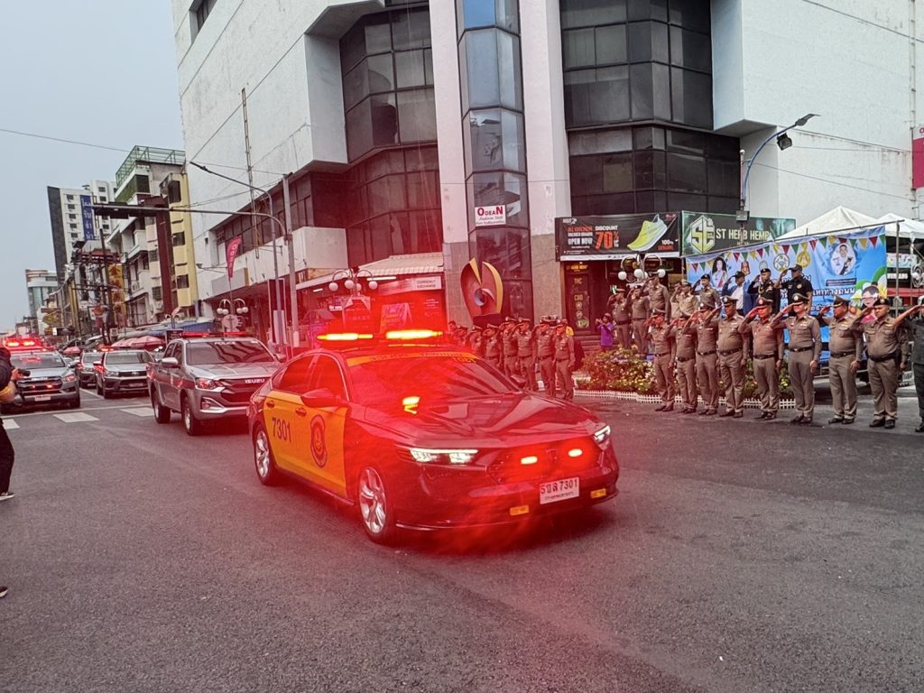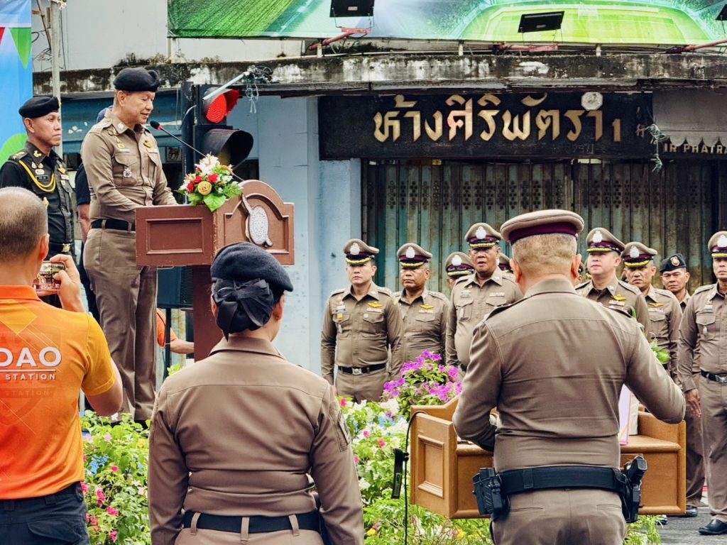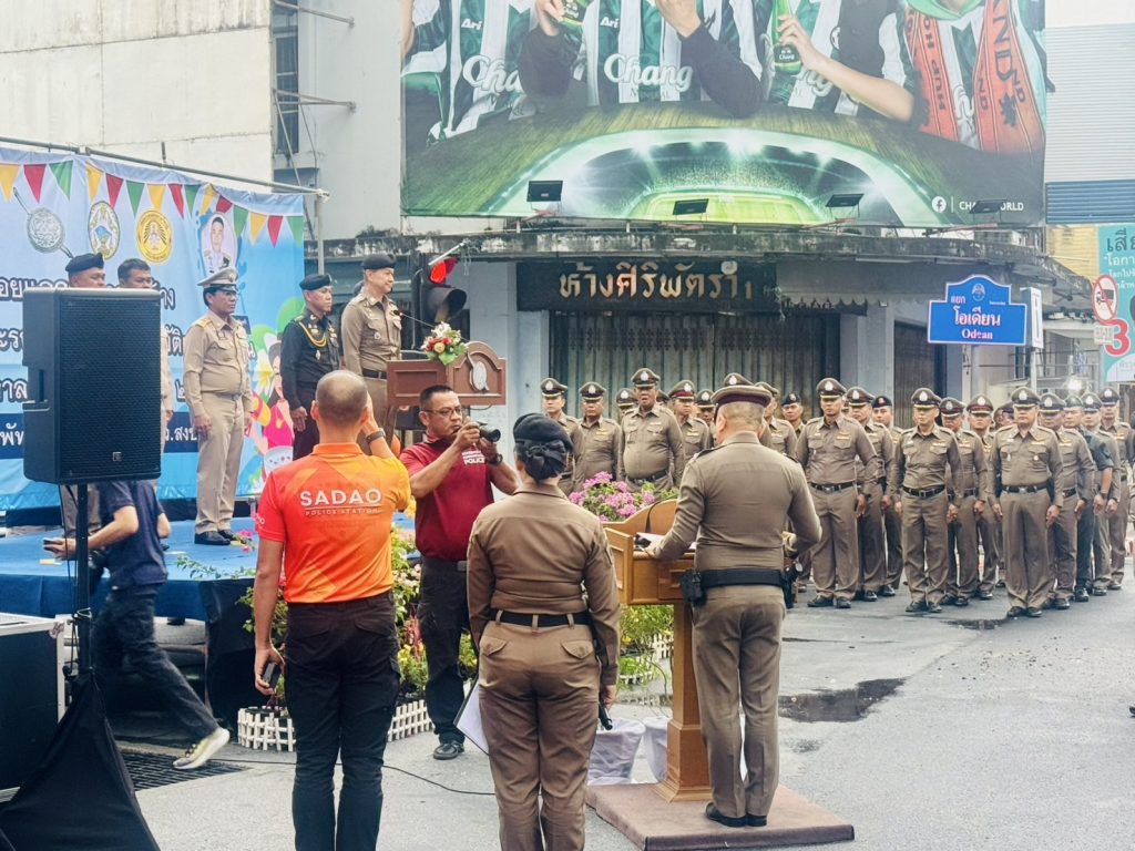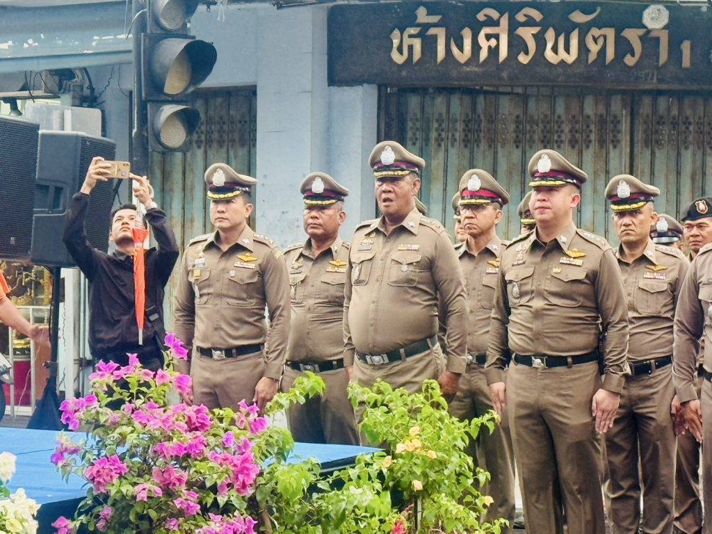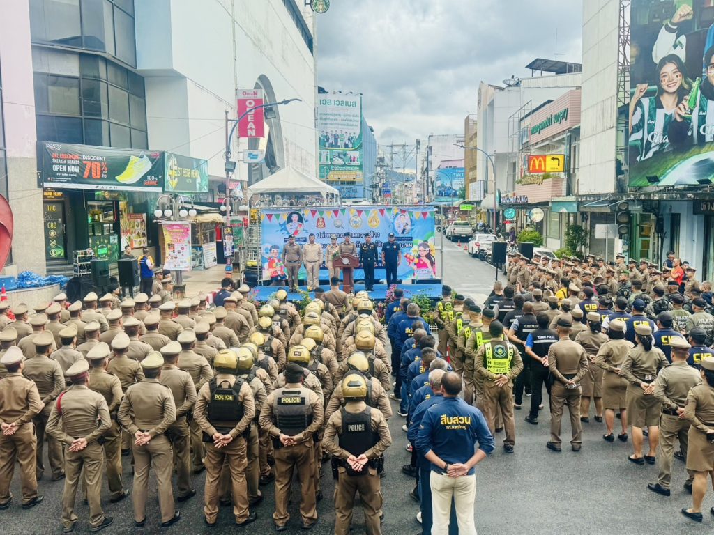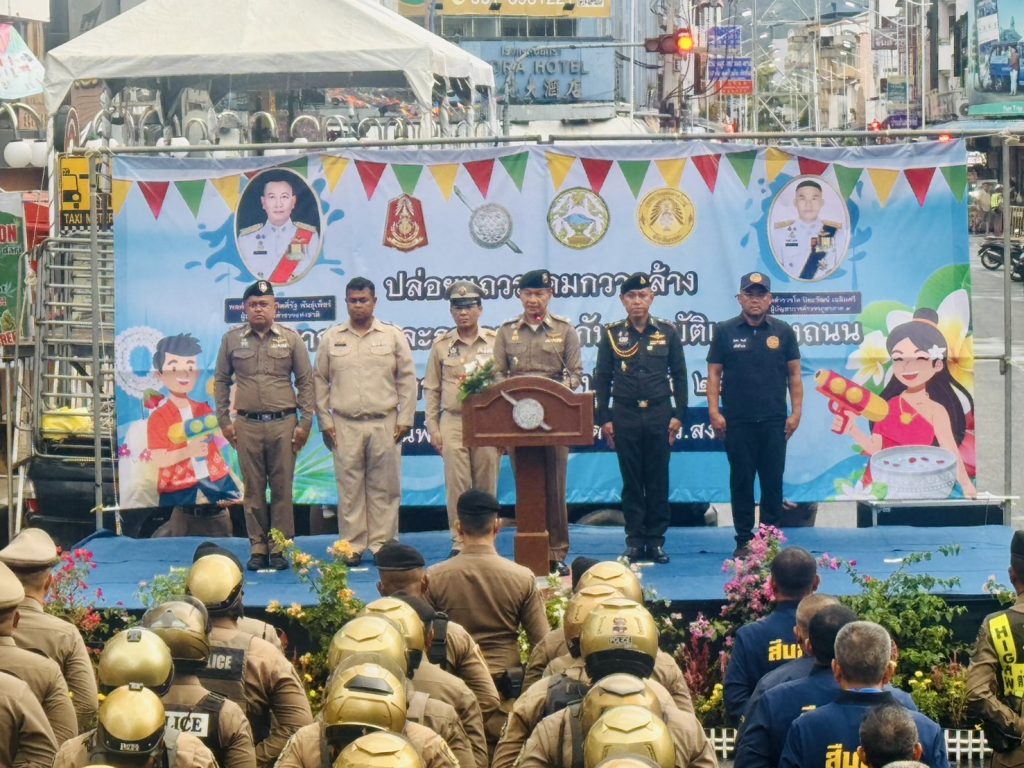 พ.ต.อ.จำลอง สุวลักษณ์ ผกก.สภ.เมืองสงขลา ได้ร่วมปล่อยแถวระดมกวาดล้างอาชญากรรม และรณรงค์ป้องกันและลดอุบัติเหตุทางถนนช่วงเทศกาลสงกรานต์ 2568 โดยมี