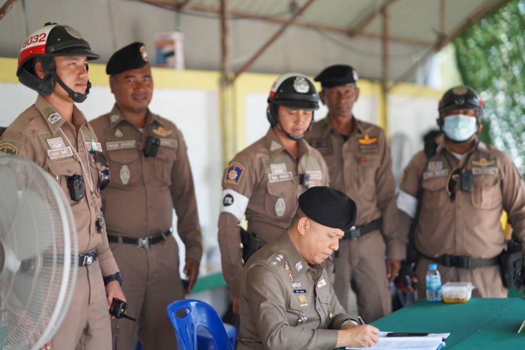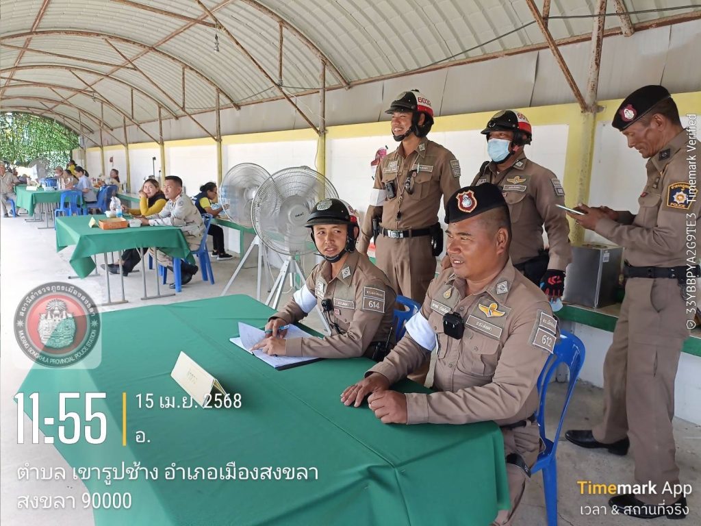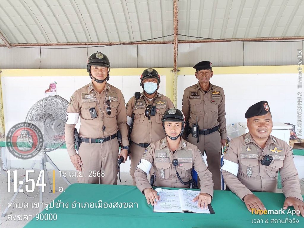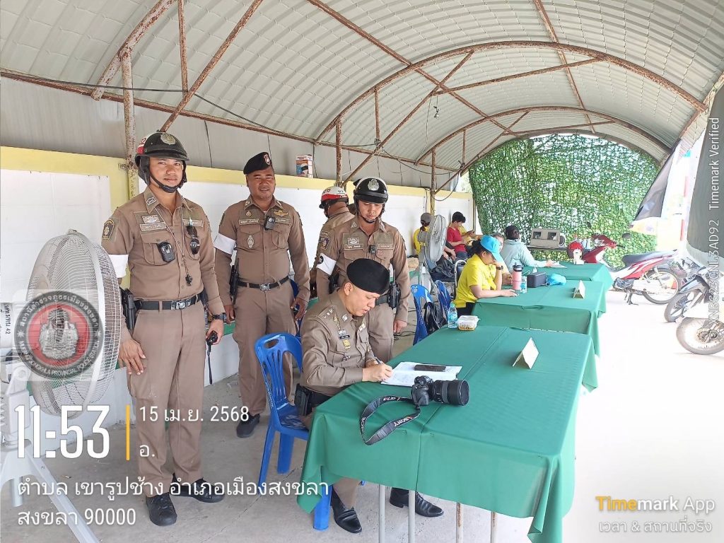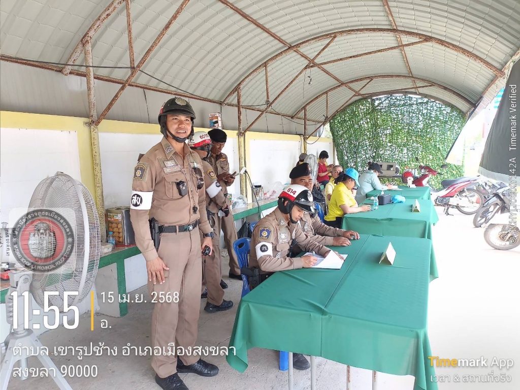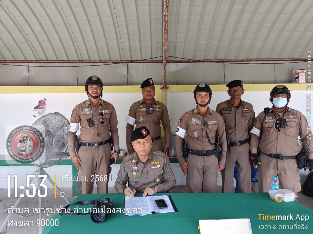 พ.ต.อ.ภาคิน ณ ระนอง รอง ผบก.ภ.จว.สงขลา ได้ตรวจเยี่ยมจุดตรวจบริการประชาชนช่วงเทศกาลสงกรานต์ 2568 บริเวณหน้าศูนย์ฝึก นศท. พบ เจ้าหน้าที่ตำรวจ สภ.เมืองสงขลา เจ้าหน้าที่ทหาร ฝ่ายปกครอง เจ้าหน้าที่สาธารณสุขและเจ้าหน้าที่ท้องถิ่น อยู่ปฏิบัติหน้าที่เรียบร้อย เหตุการณ์ปกติ ได้สั่งการและกำชับการปฏิบัติดังนี้