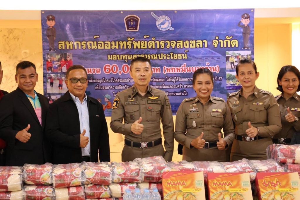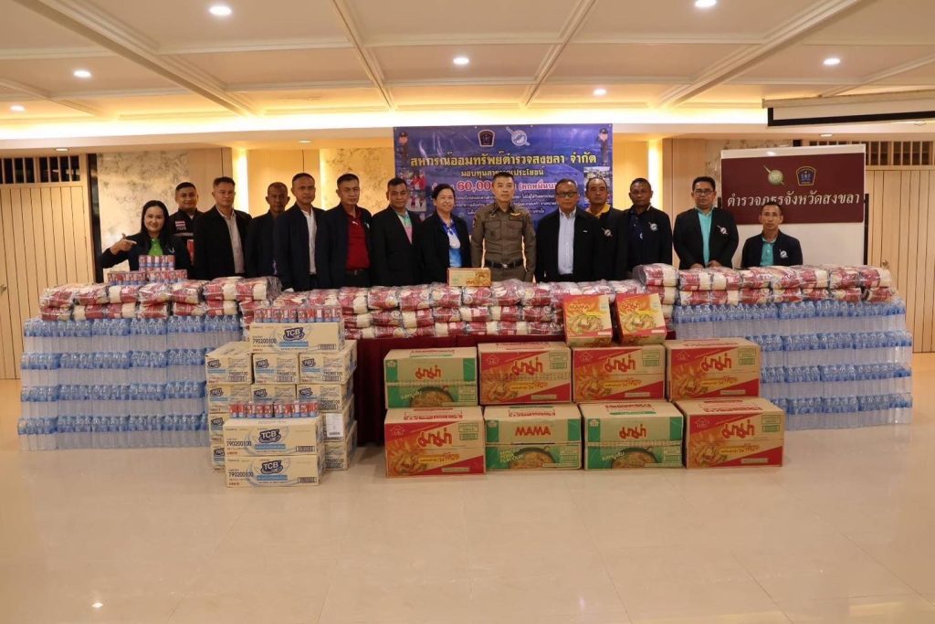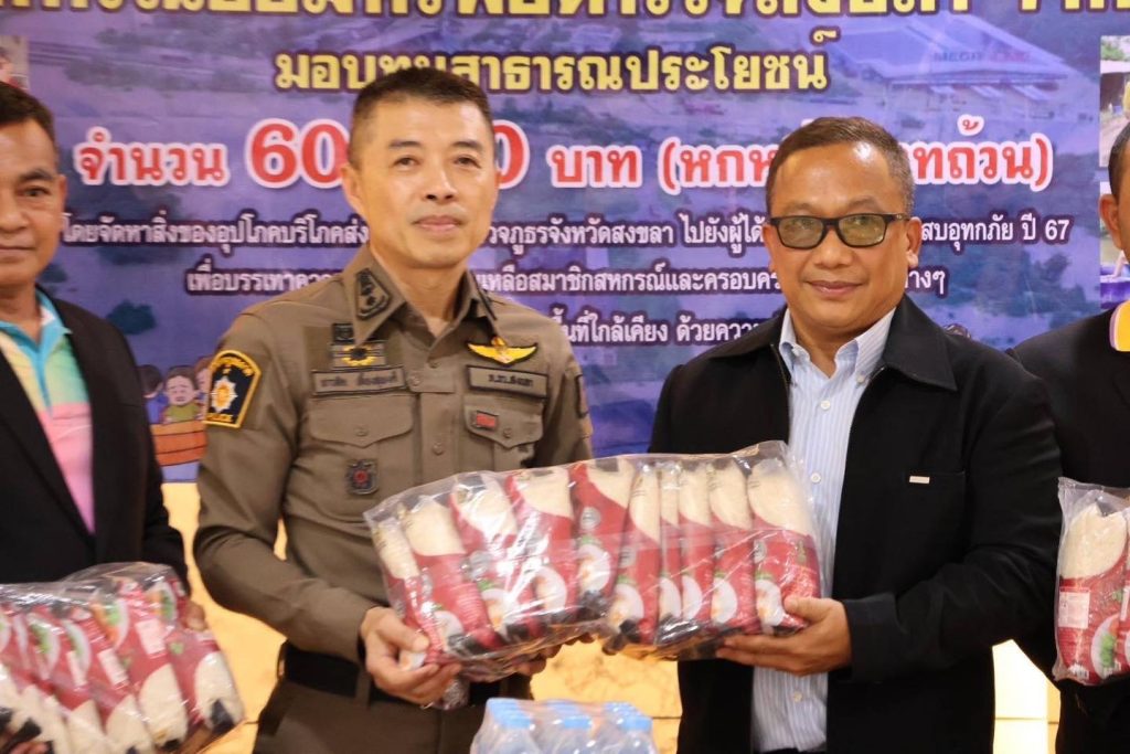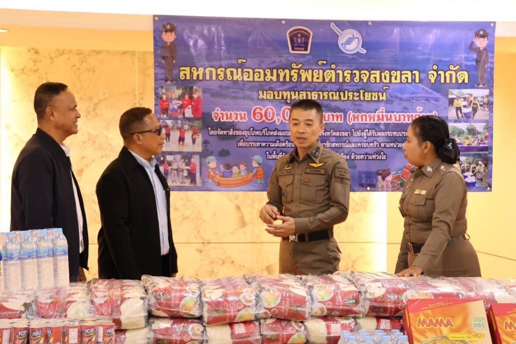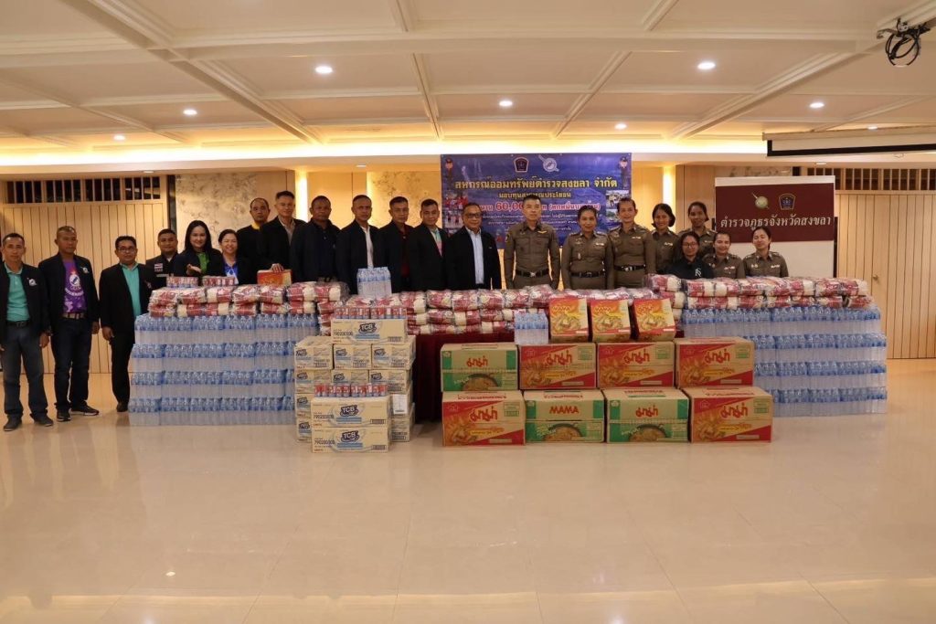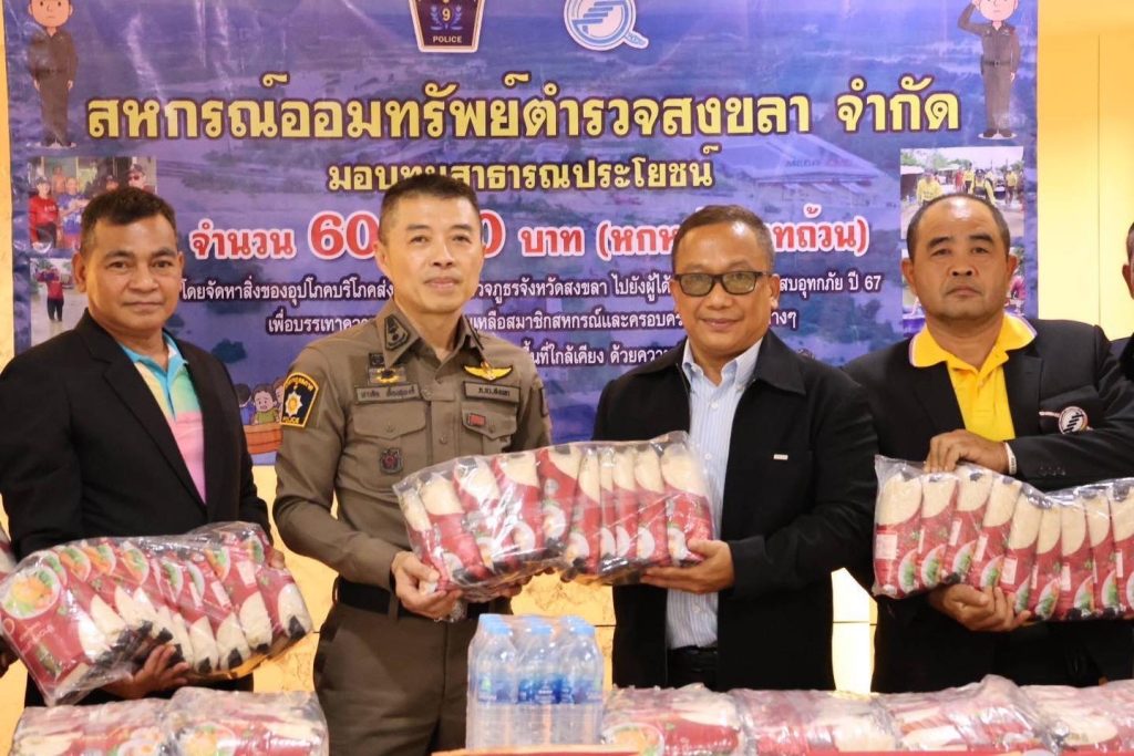 รับมอบเครื่องอุปโภคบริโภค จากสหกรณ์ออมทรัพย์ตำรวจสงขลา จำกัด เพื่อนำไปมอบให้กับผู้ที่ได้รับผลกระทบจากเหตุอุทกภัย ปี 2567 เพื่อบรรเทาความเดือดร้อน ช่วยเหลือสมาชิกตำรวจ ในพื้นที่ สภ.เมืองสงขลา จังหวัดสงขลา และพื้นที่ใกล้เคียง