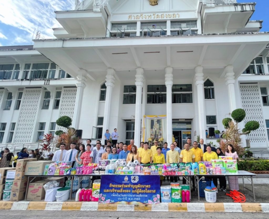 พ.ต.อ.จำลอง สุวลักษณ์ ผกก.สภ.เมืองสงขลา พร้อมด้วยข้าราชการตำรวจ สภ.เมืองสงขลา ได้ร่วมพิธีทำบุญตักบาตรและร่วมบริจาคสิ่งของแก่ผู้ด้อยโอกาส เนื่องในวันสถาปนาศาลยุติธรรมประจำ 2568