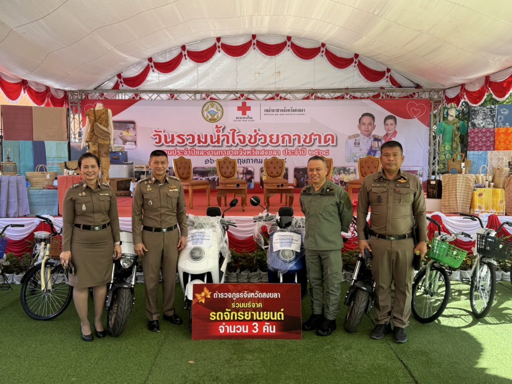 พล.ต.ต.เสกสันต์ ชูรังสฤษฎิ์ ผบก.ภ.จว.สงขลา พร้อมด้วย พ.ต.อ.จำลอง สุวลักษณ์ ผกก.สภ.เมืองสงขลา ได้ร่วมงาน “วันรวมน้ำใจช่วยกาชาด”