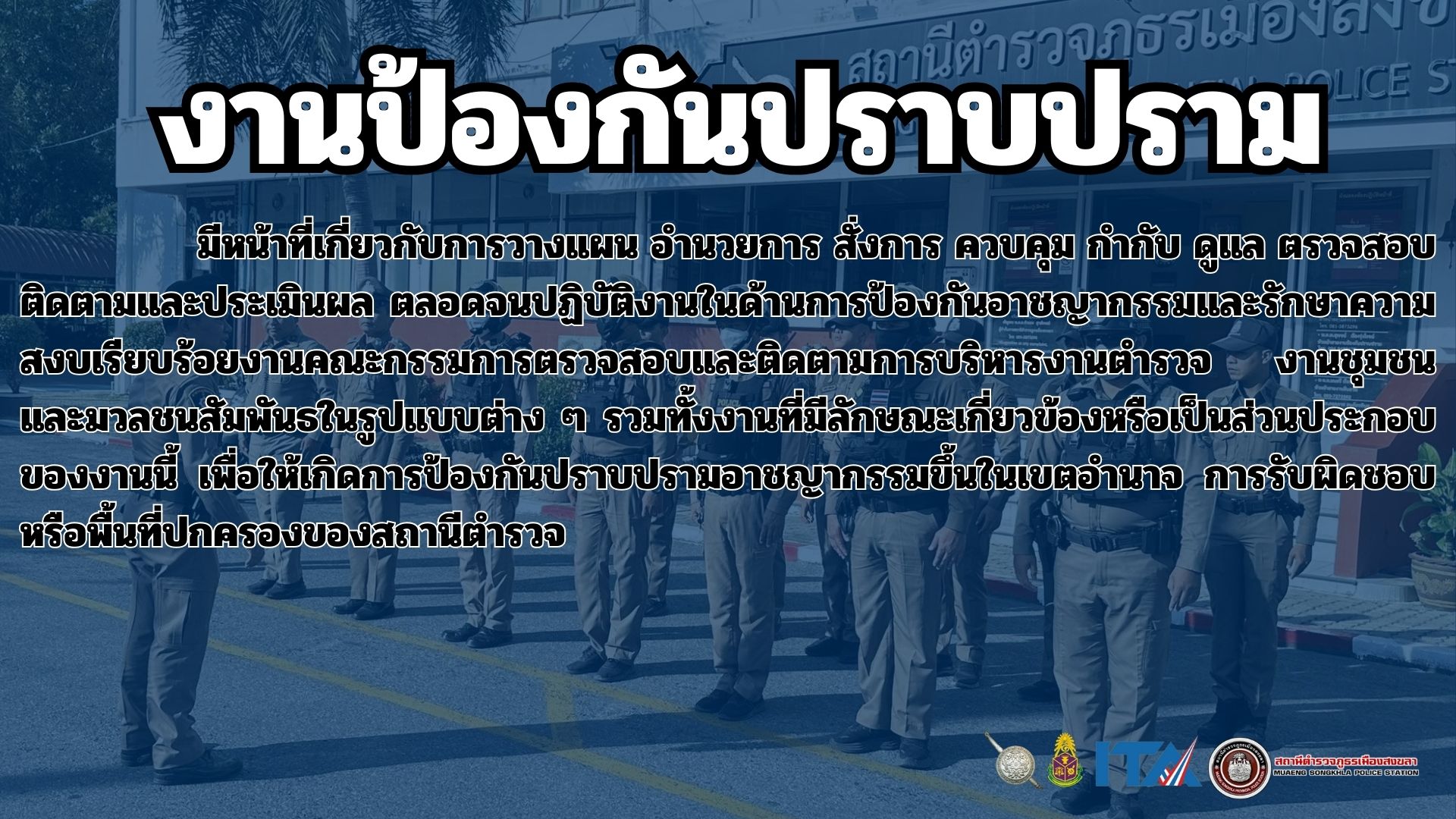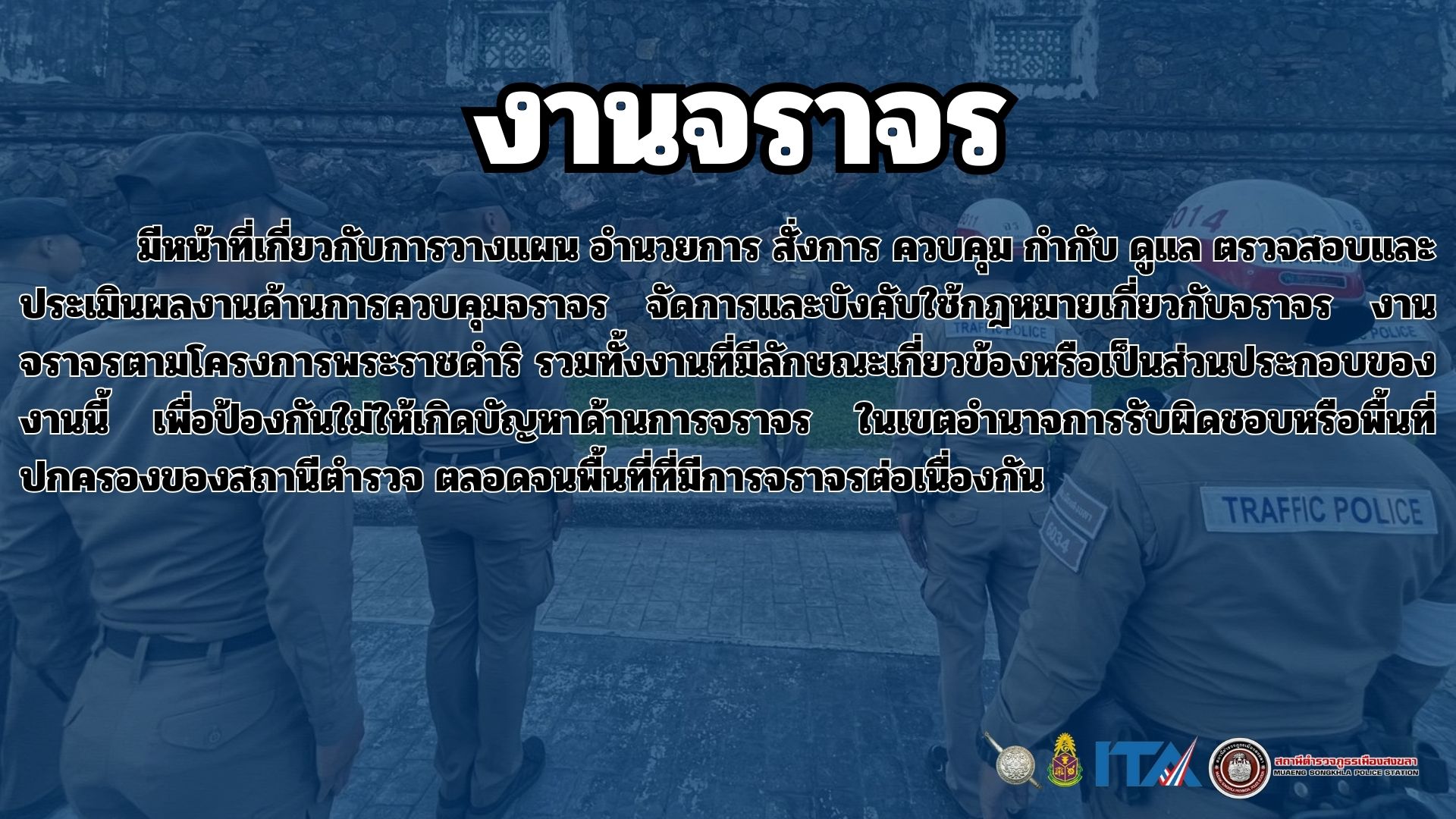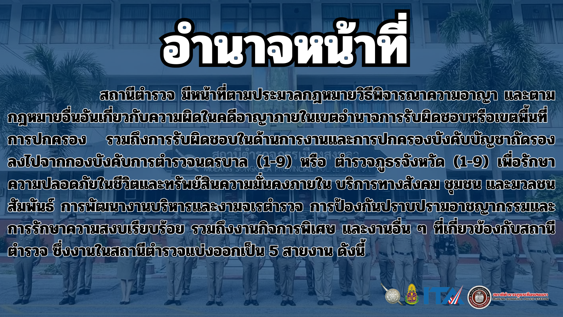 อำนาจหน้าที่ของตำรวจข้อมูล ณ วันที่ 18 มีนาคม 2568 1. งานป้องกันปราบปราม 2. งานจราจร 3. งานสืบสวน 4. งานสอบสวน 5. งานอำนวยการ