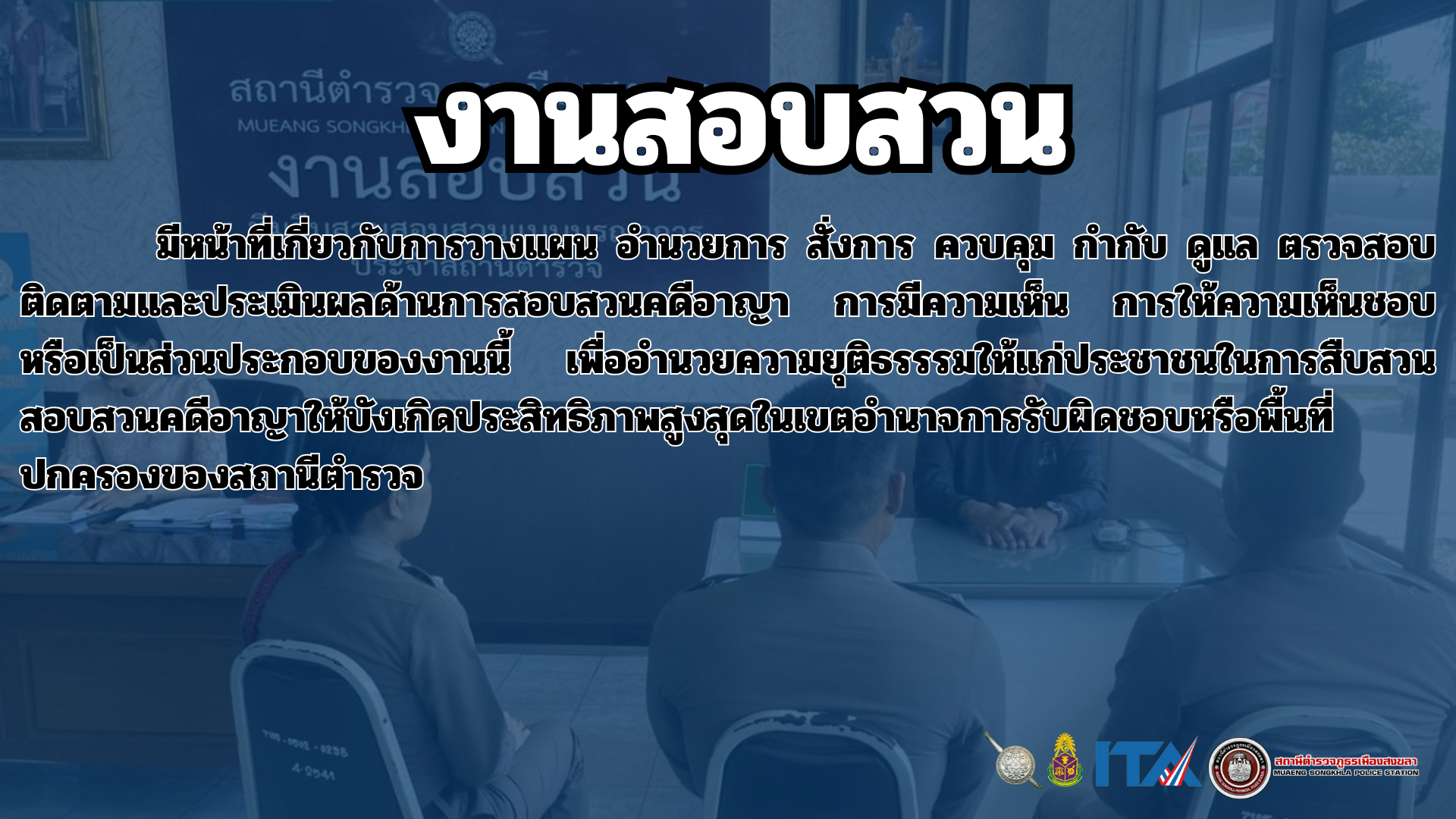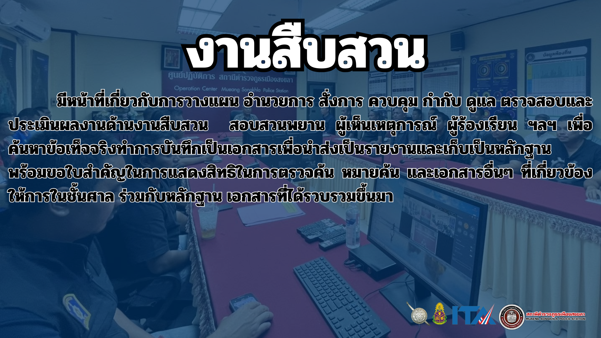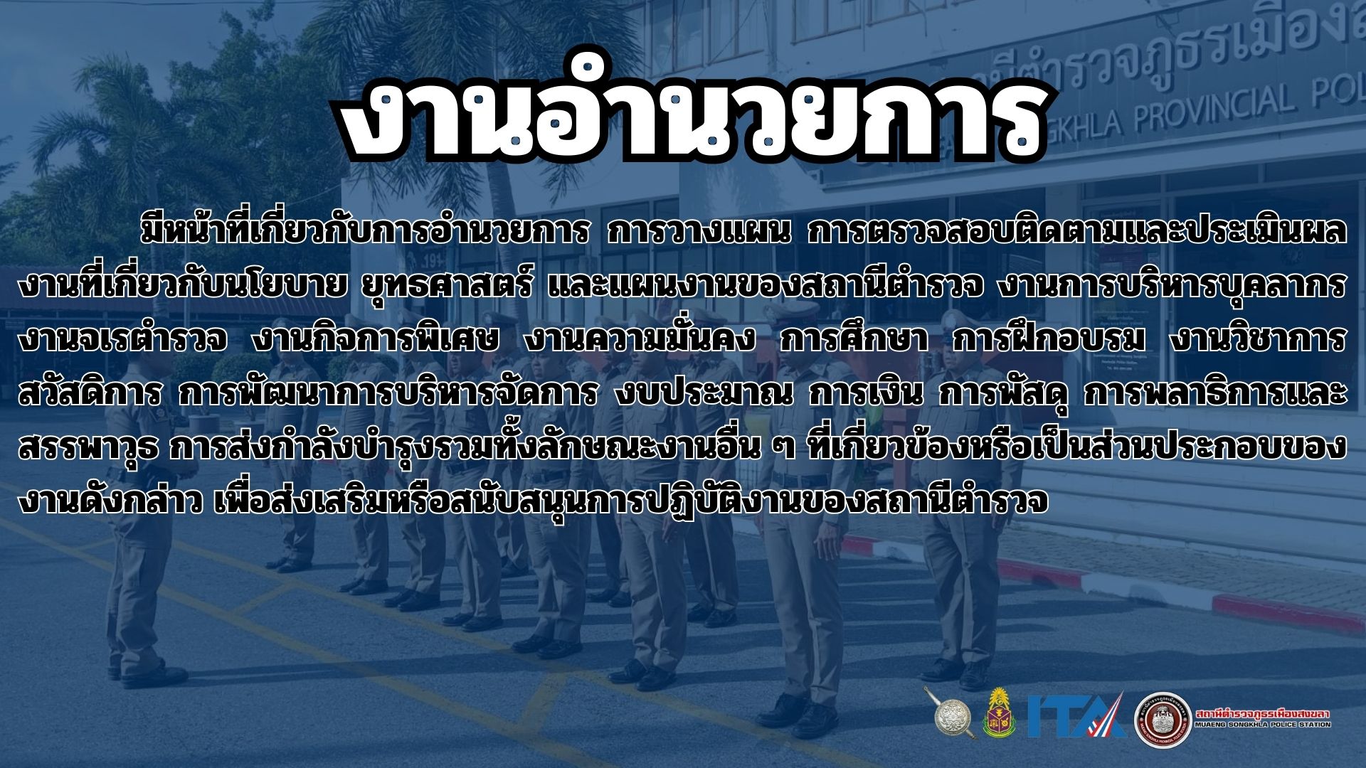 อำนาจหน้าที่ของตำรวจข้อมูล ณ วันที่ 18 มีนาคม 2568 1. งานป้องกันปราบปราม 2. งานจราจร 3. งานสืบสวน 4. งานสอบสวน 5. งานอำนวยการ