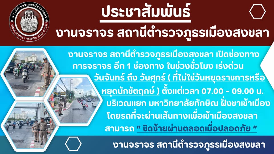 เส้นทางเลี่ยงการจราจรติดขัดเพื่อเข้าสู่ตัวเมืองสงขลา