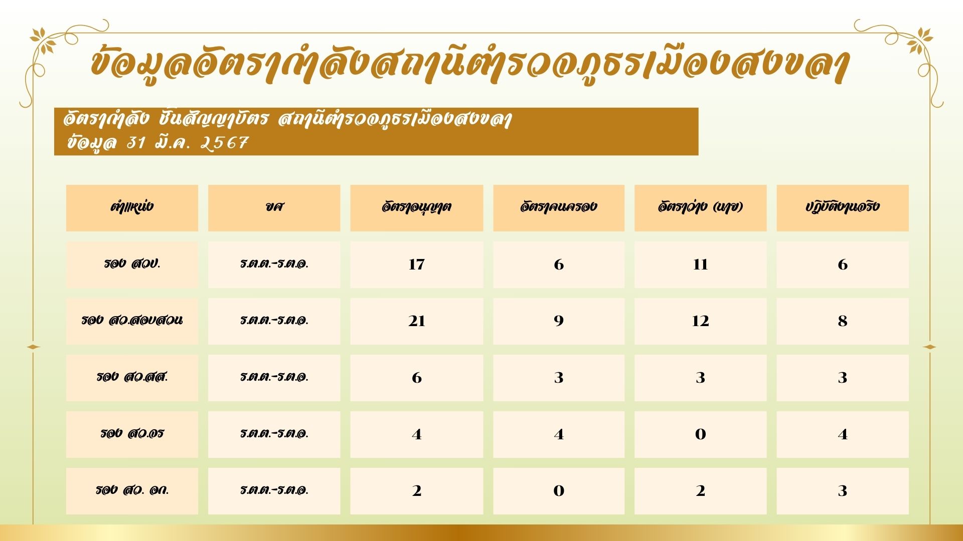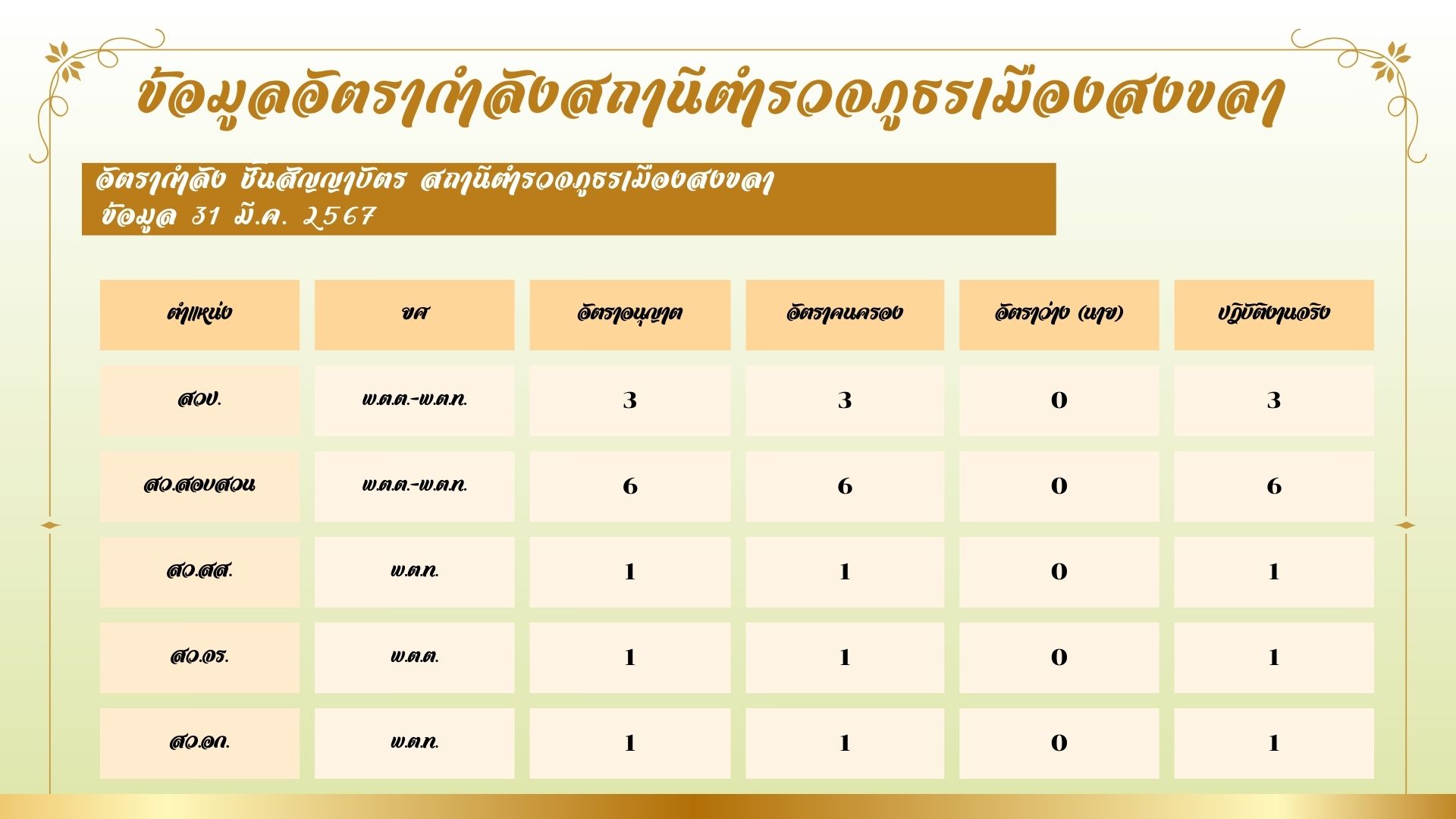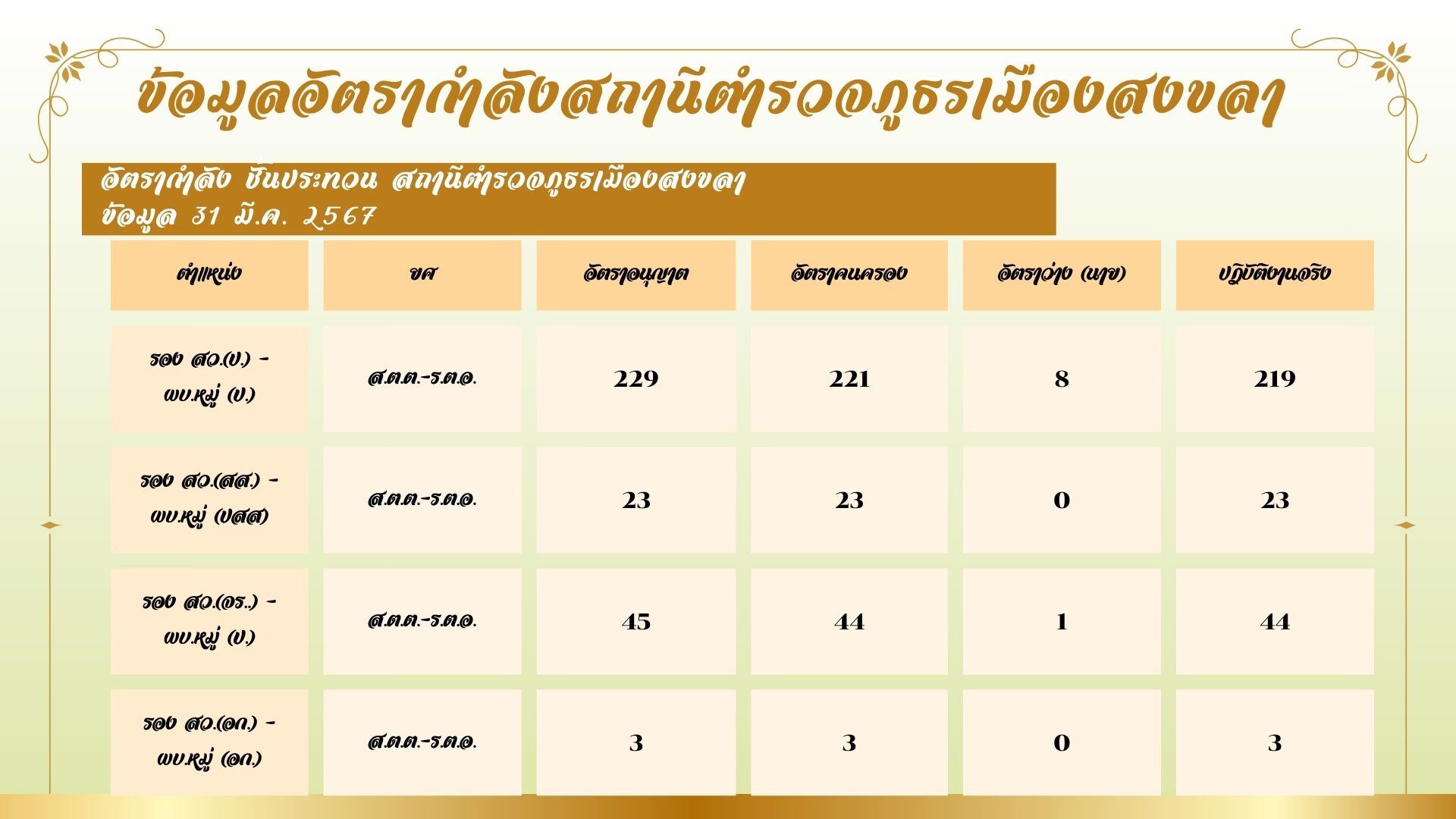 ข้อมูล ณ วันที่ 31 มีนาคม 2567